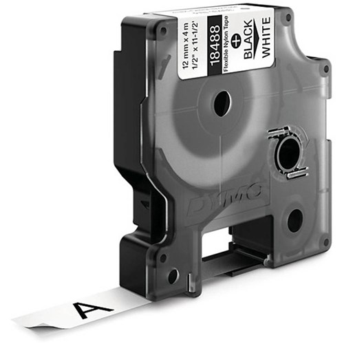 Dymo 18488 Rhino Industrial Labels 12mm x 3.5m Nylon Black on White