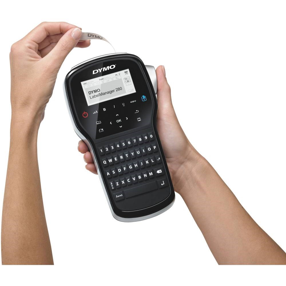 Includes LabelManager™ 280 Label Maker, rechargeable battery pack, USB cable and D1 starter label cassette, black on white 12mm x 3m.