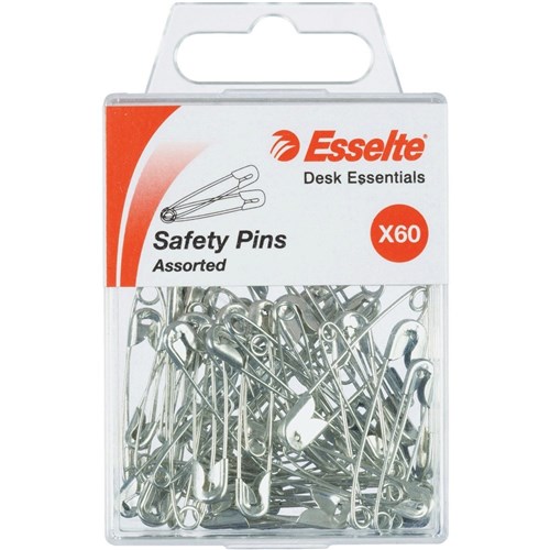 Esselte Safety Pins Silver Assorted Sizes Pack Of 60