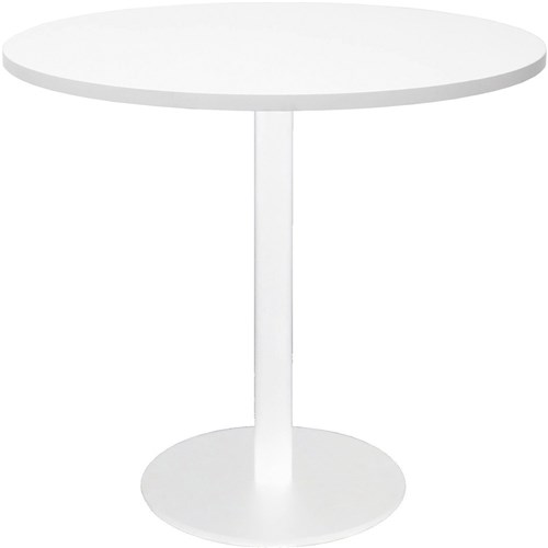Estillo Round Meeting Table 900mm White Top White Disc Base