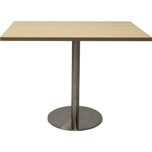 Estillo Square Meeting Table 900X900mm Natural Oak Top Stainless Steel Disc Base