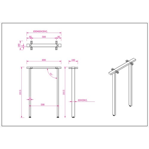 Eternity High Bar Table Intermediate Leg 690W x 180D x 1015mmH Black