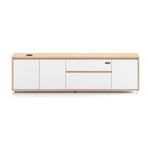 Executive desk right hand side cabinet for Executive Boost+ and Halo+ Workstations. Natural Oak carcass and Natural White drawer and door fronts.