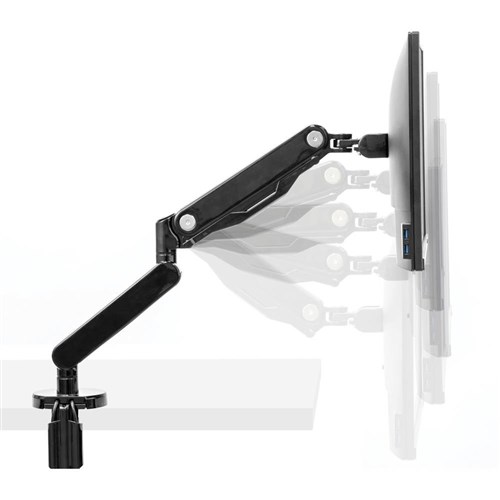 Easily mounted via clamp or grommet. Holds a monitor up to 8kg (up to 40 inch monitors) and meets VESA mounting standards.
