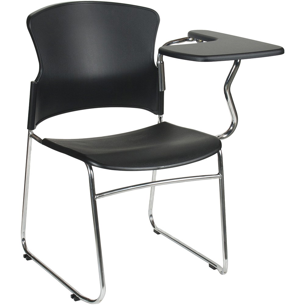 Focus Chair With Left Hand Side Tablet Arm Chrome Sled Base Black Plastic Seat