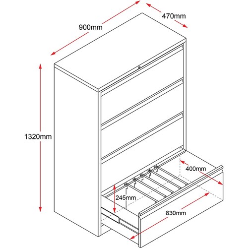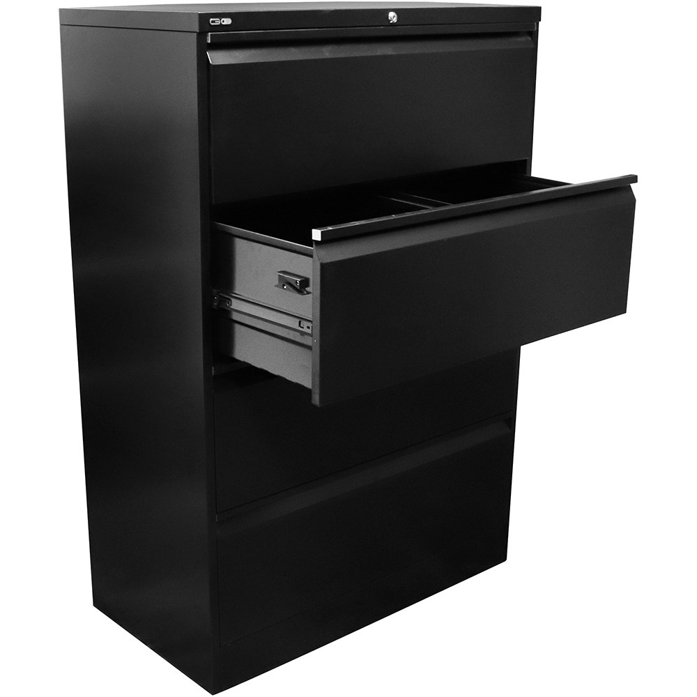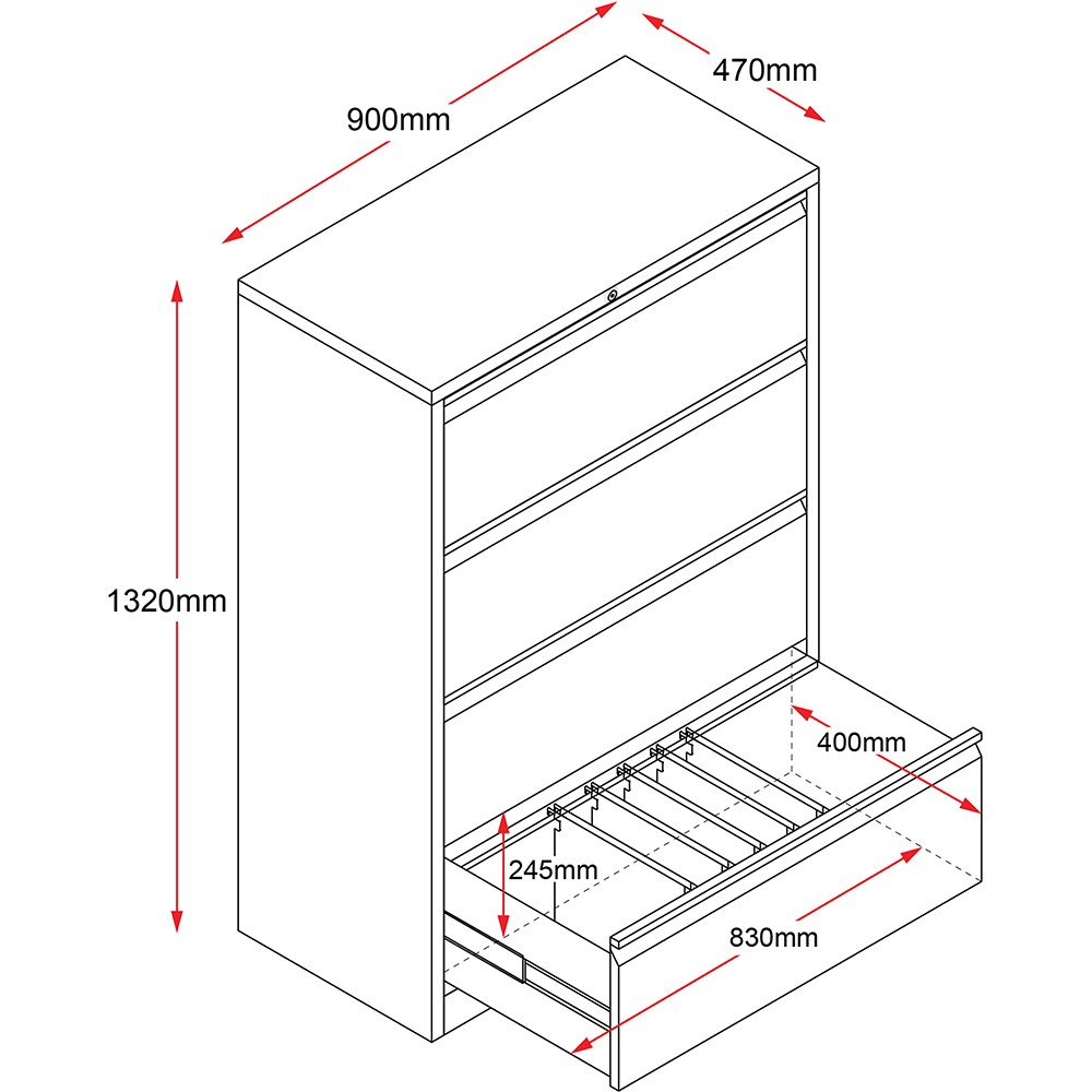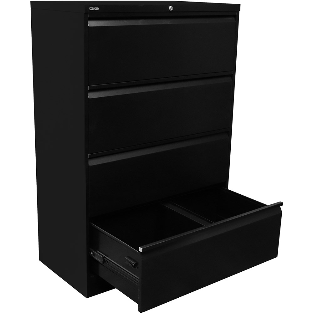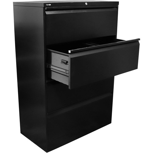 Go Steel Lateral Filing Cabinet 4 Drawer 1321Hx900Wx470mmD Black