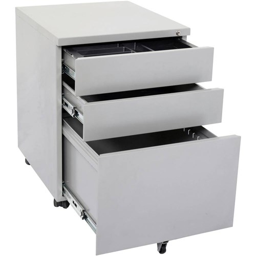 Go Steel Mobile Pedestal 2 Drawer 1 File Precious Silver