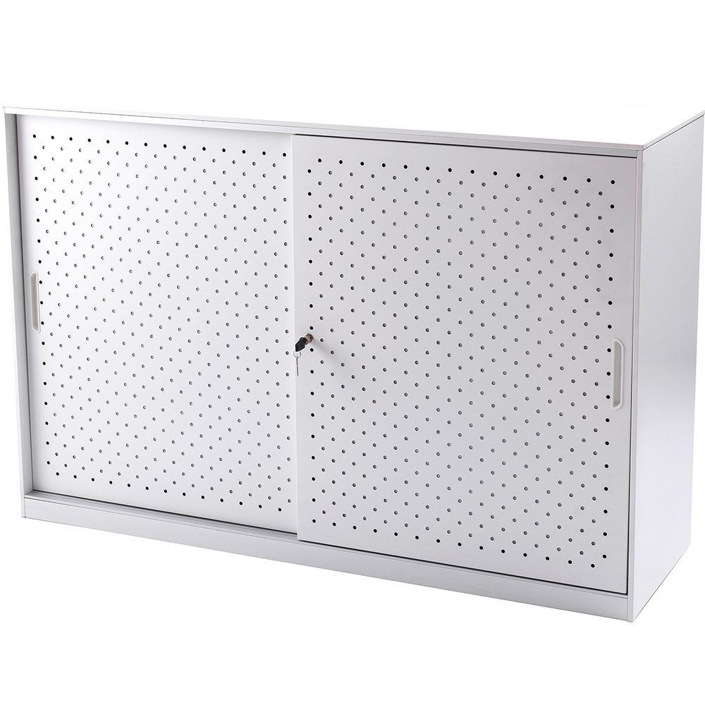 Go Steel Perforated Door Sliding Door Cupboard 1530W x 473D x 1016mmH White