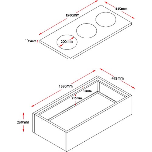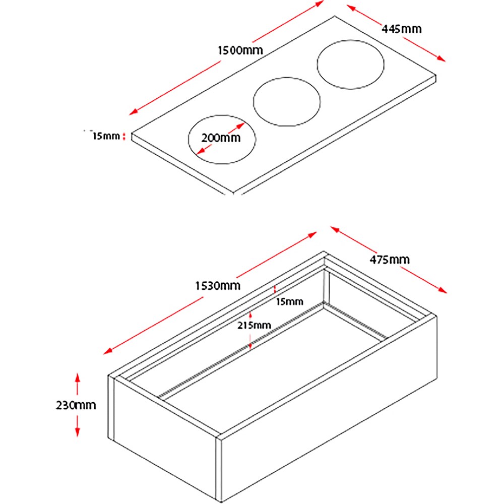 Go Steel Planter Box suit Perforated Door Cupboard 1530W x 473D x 230mmH Black