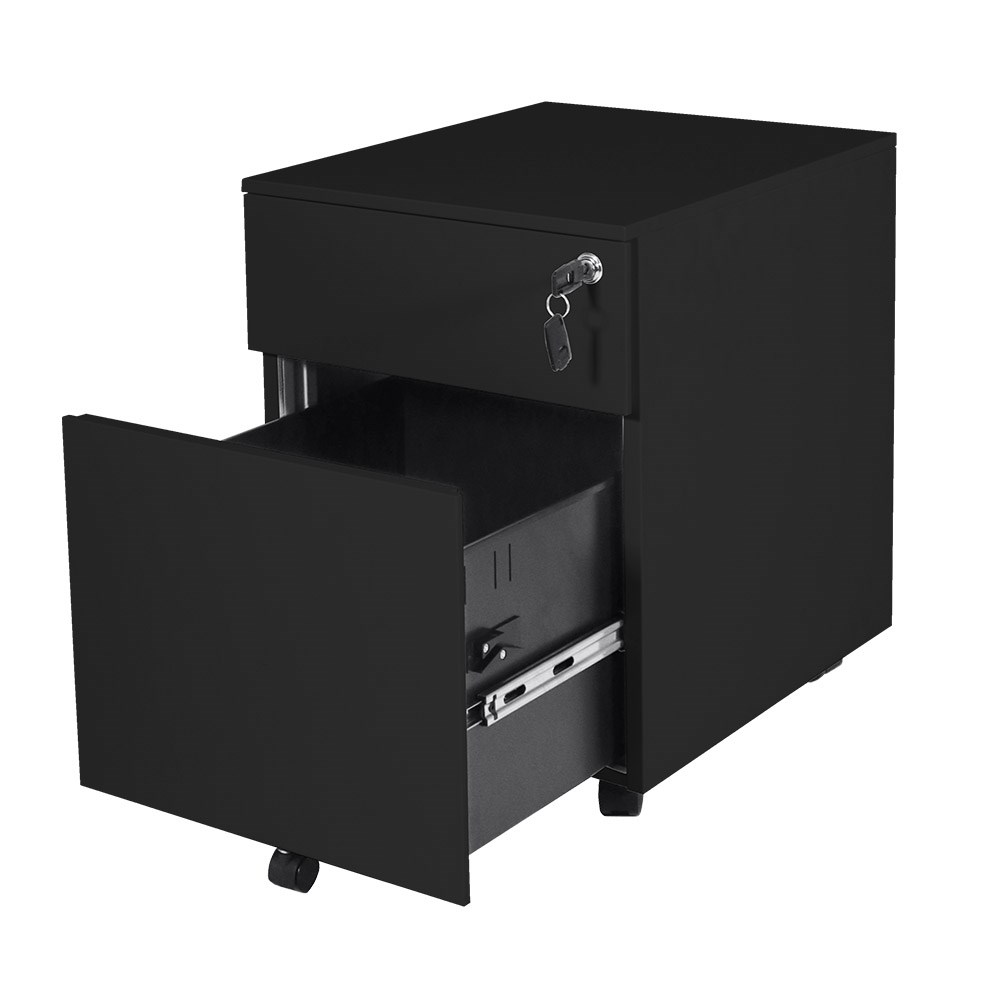 Go Steel Short Mobile Pedestal 1 Drawer 1 File Suit Height Adjustable Desk Black