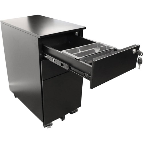 Go Steel Slim Mobile Pedestal 2 Drawer 1 File Black