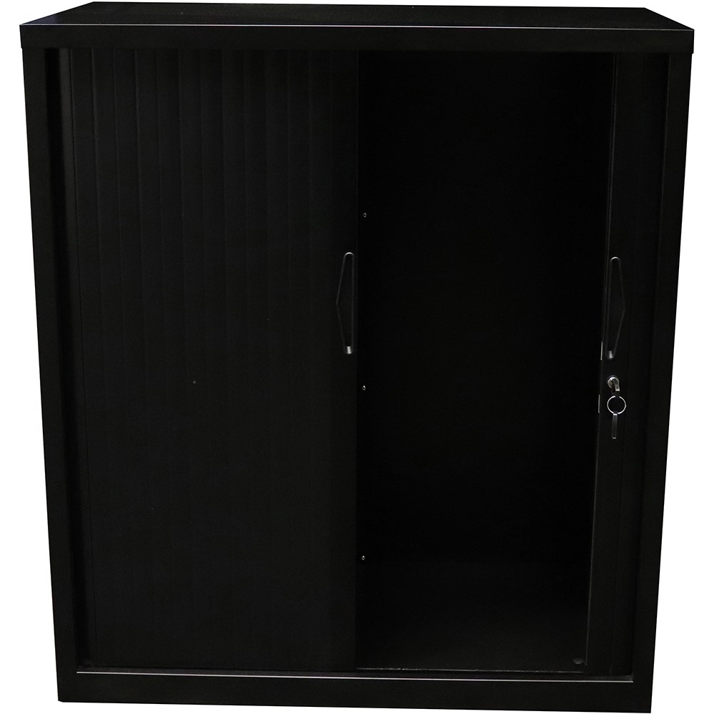 Go Steel Tambour Door Storage Cupboard No Shelves 1981Hx 1200Wx 473mmD Black