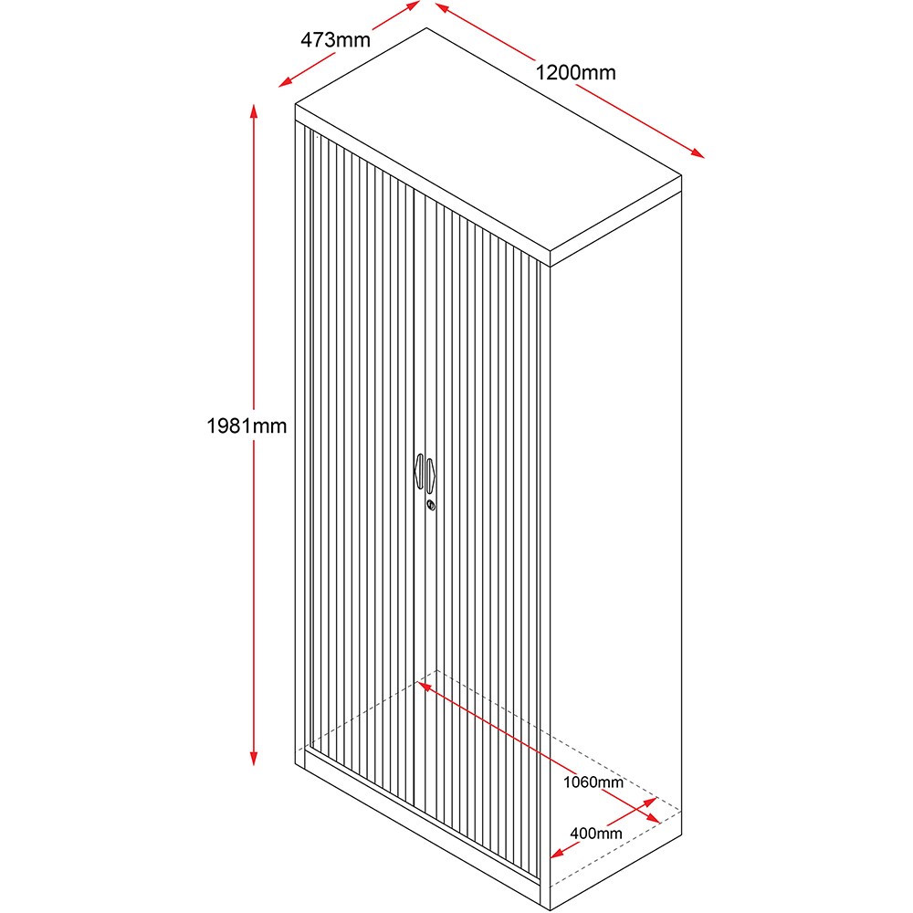 Go Steel Tambour Door Storage Cupboard No Shelves Included 1981Hx1200Wx473mmD White