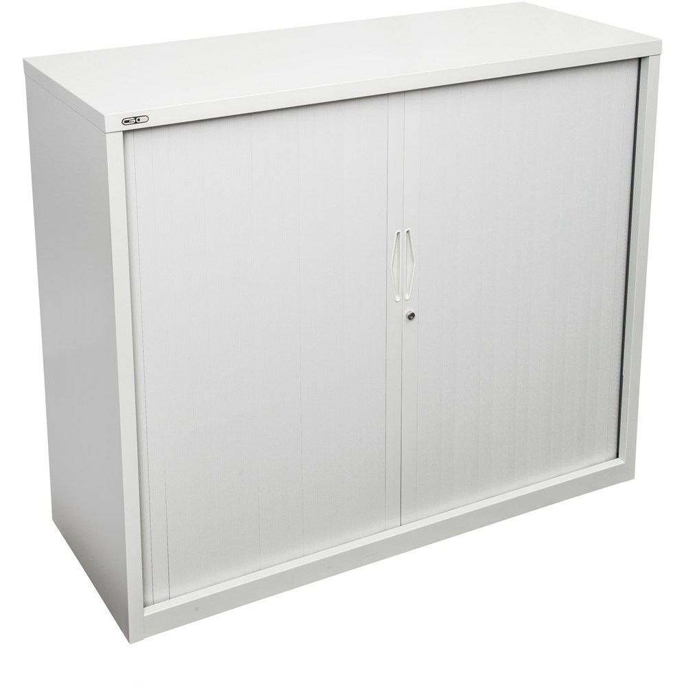 Go Steel Tambour Door Storage Cupboard No Shelves Included 1016Hx900Wx473mmD White