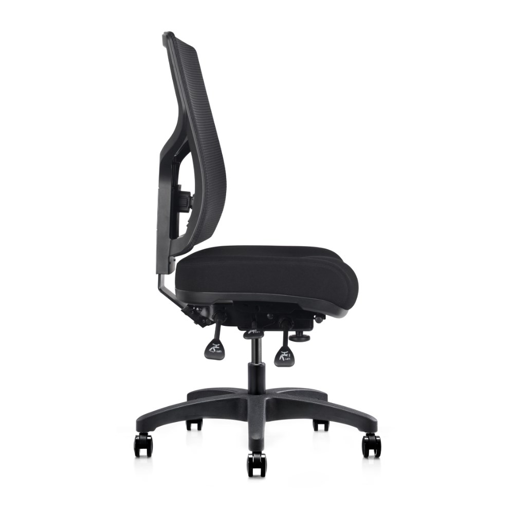 Featuring a heavy-duty mechanism with seat slide, height-adjustable lumbar support.