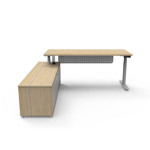 Halo+ Executive Desk + Panel LHS Cabinet Height Adjustable 2020W x 1936D Oak/White
