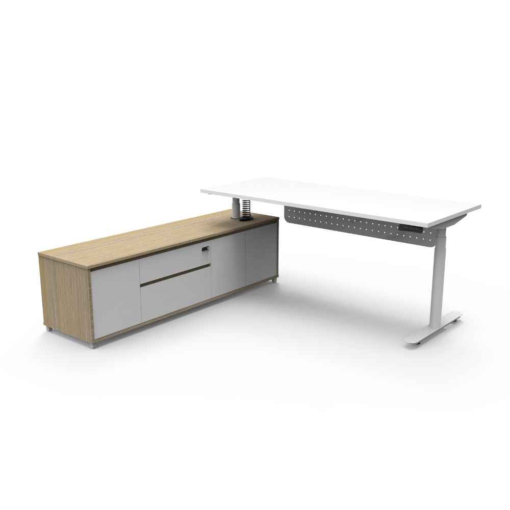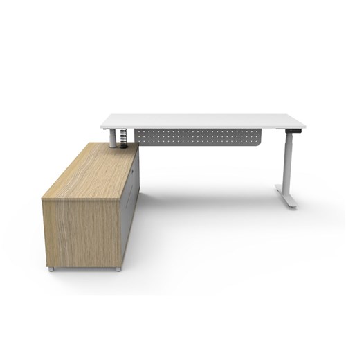 Halo+ Executive Desk + Panel LHS Cabinet Height Adjustable 2020W x 1936D Oak/White