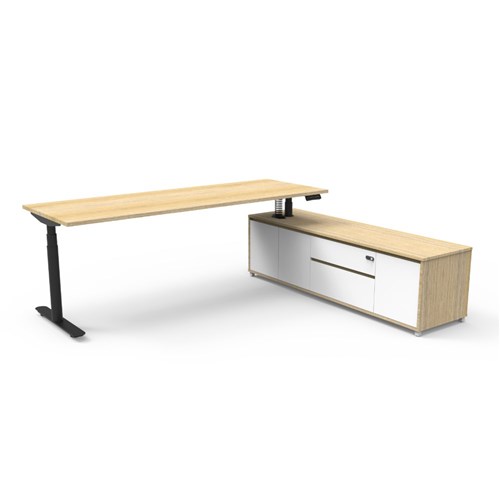 Halo+ Executive Desk RHS Cabinet Height Adjustable 2270W x 1936D Oak/Black