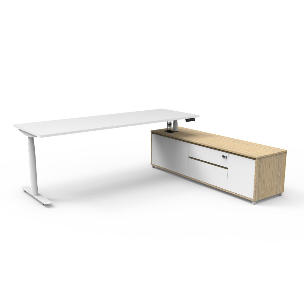 Halo+ Executive Desk RHS Cabinet Height Adjustable 2270W x 1936D Oak/White