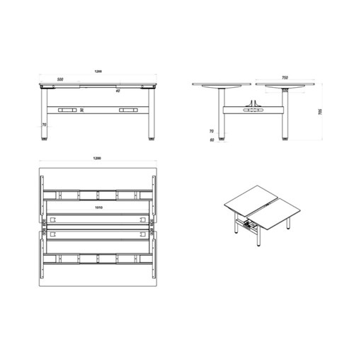 Per User Dimensions: 1200W x 750D x 730mmH.