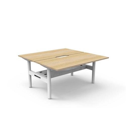 Halo Static Back To Back Workstation + Cable Tray 2 Person 1500Wx730mmH Oak/Wht