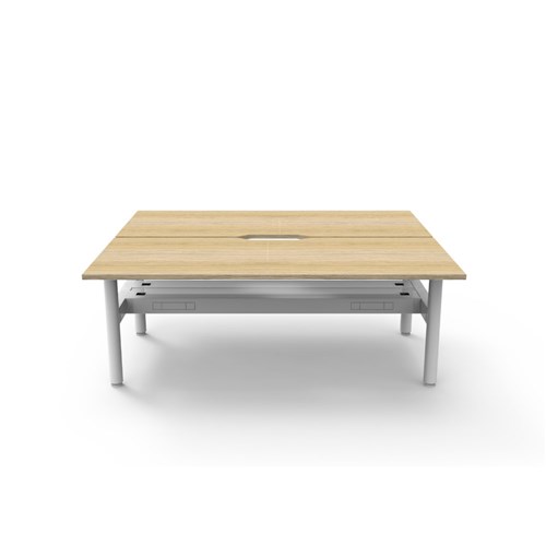 Halo Static Back To Back Workstation + Cable Tray 2 Person 1800Wx730mmH Oak/Wht