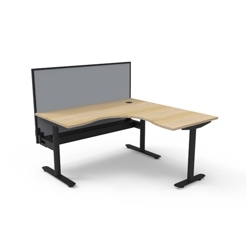 Natural Oak top Black Satin frame. Corner workstation with screen and cable tray.