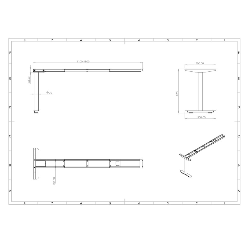 Halo Static Return fixed height workstation frame only. Telescopic frame.