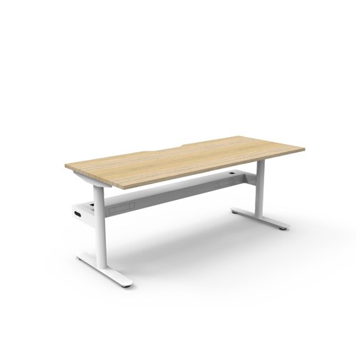 Halo Static Single Sided Workstation + Cable Tray 1800Wx750Dx730mmH Oak/White