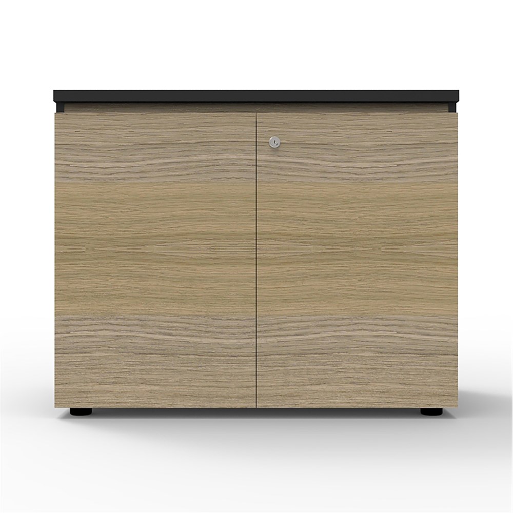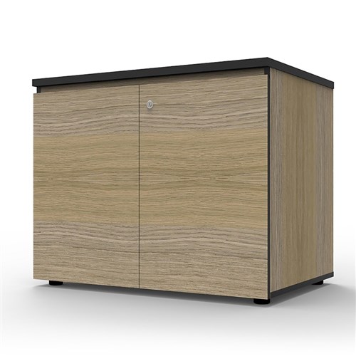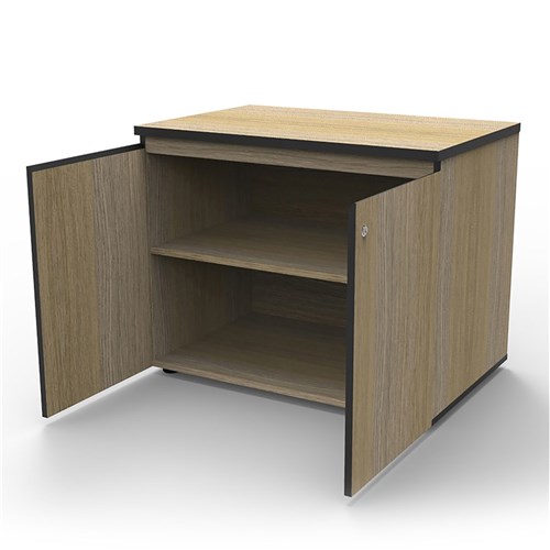 Infinity Swing Door Cupboard 2 Door 900mm x 600mmD Natural Oak & Black Edging