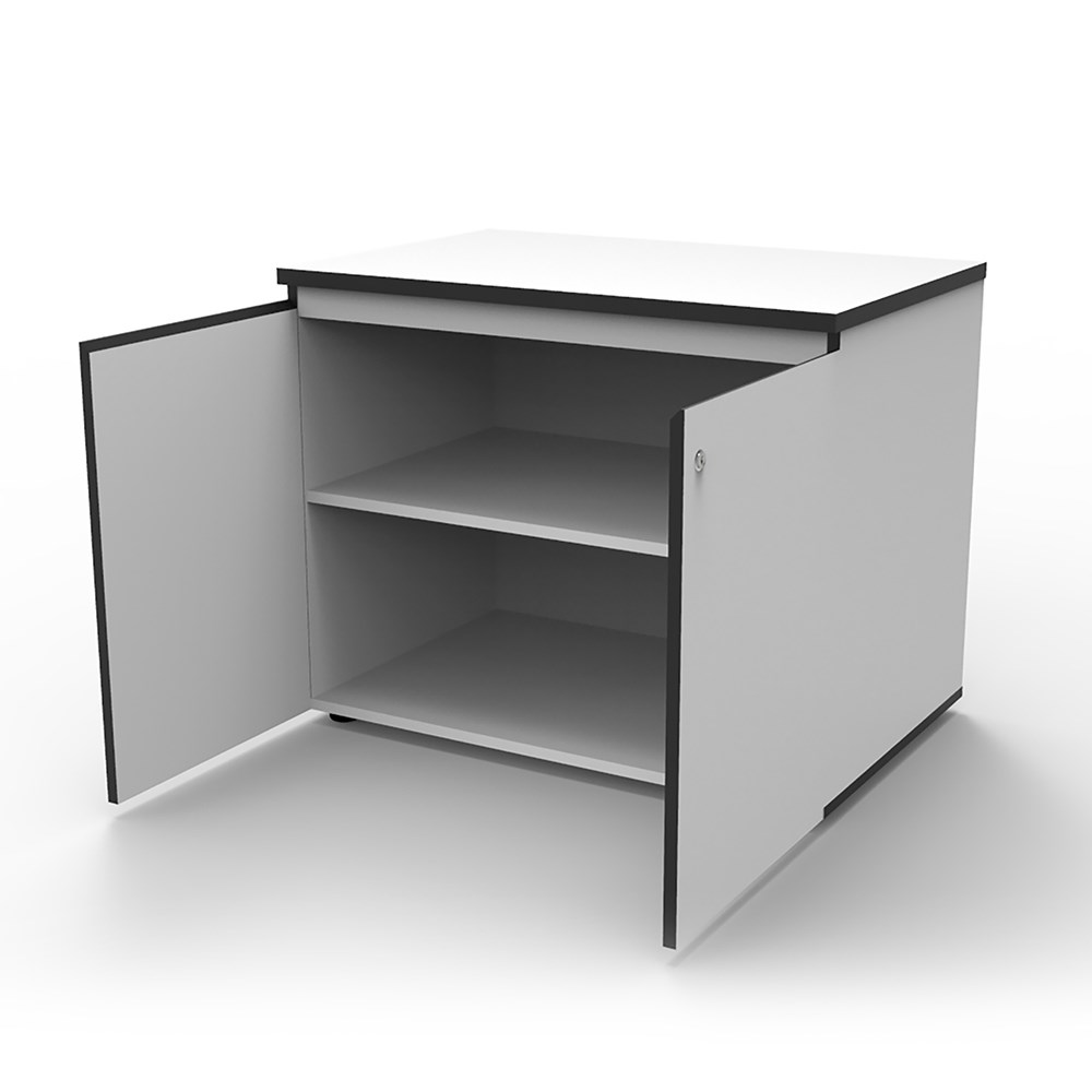 Infinity Swing Door Cupboard 2 Door 900mm x 600mmD Natural White & Black Edging