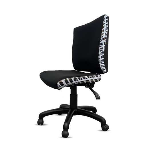 A unique commercial fabrics designed by Paulina Puruntatameri (Indigenous Artist) combined with K2 Black Fabric to upholster the chair.