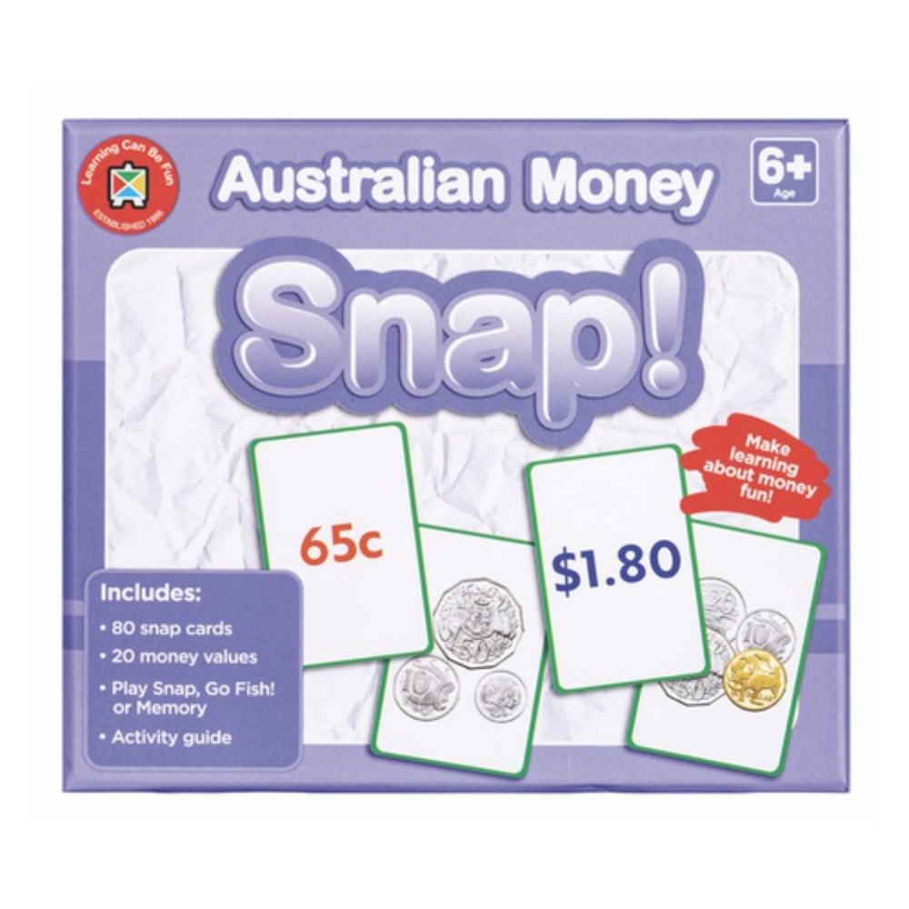 Includes: 80 snap cards, 20 money values and activity guide.