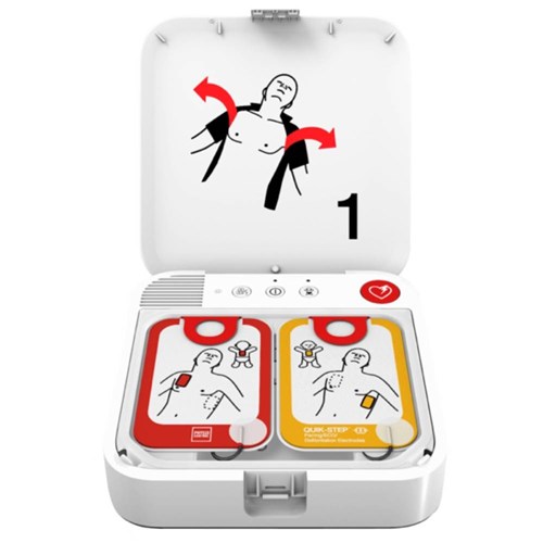 Highest available escalating energy - up to 360J for more effective shocks as needed. Quik-Step Electrodes - Peel directly off the base for faster placement.