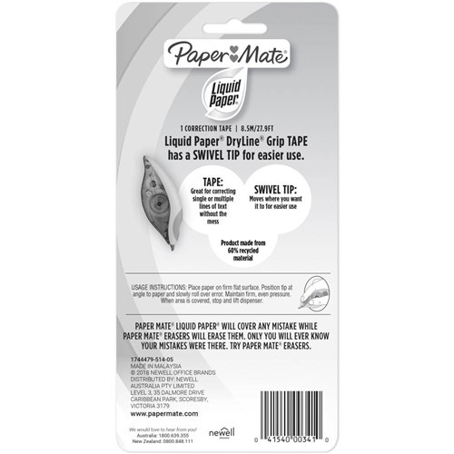 Liquid Paper Correction Tape Dryline Grip 5mmx8.5m 60% Recycled