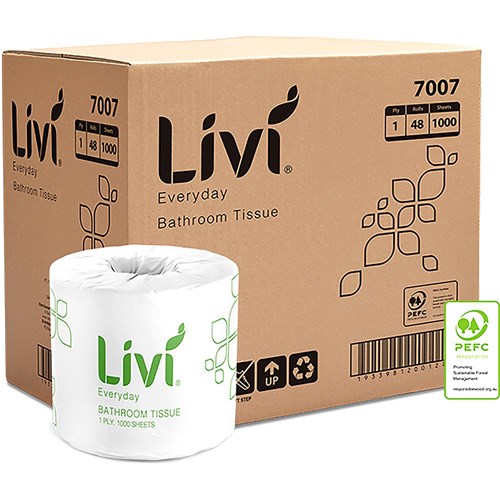 Livi Basics Toilet Paper Rolls 1 ply 1000 Sheets Box of 48