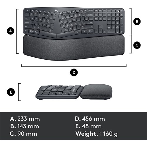 Logitech K860 Wireless Keyboard Ergo Split Graphite