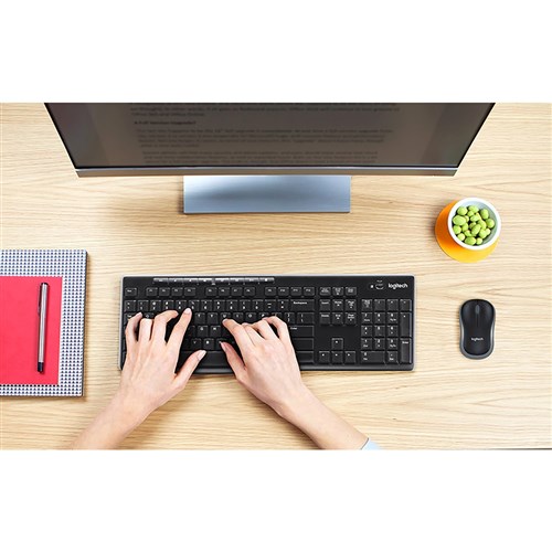 MK270 Wireless Combo brings together the convenience and comfort of a full-sized keyboard with a sculpted, compact mouse.