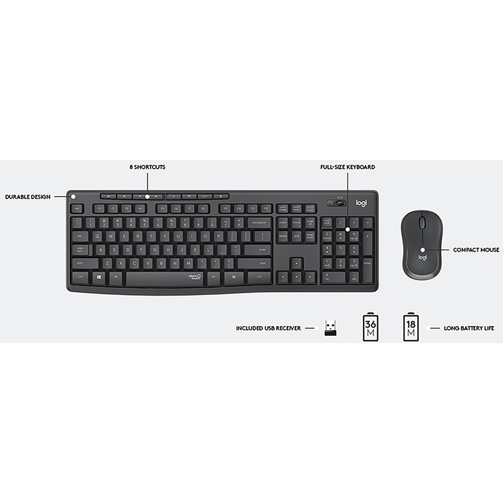 Logitech MK295 Wireless Combo Silent Keyboard and Mouse Graphite