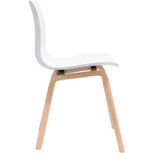 Lucid Meeting Visitor Chair White Patterned Poly Shell Light Oak Timber 4 Leg Base