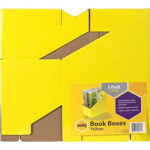 Marbig Book Boxes Large 17wx25dx27h cm Yellow Pack Of 5