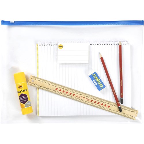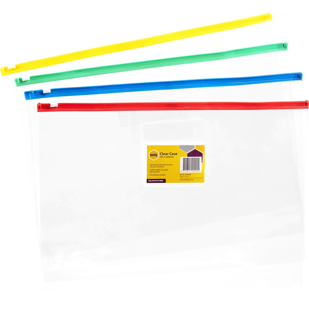 Marbig Clear Cases B4 395x290mm with Coloured Zip Assorted