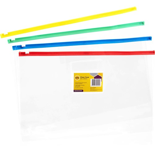Marbig Clear Cases A4 335x245mm With Coloured Zip Assorted