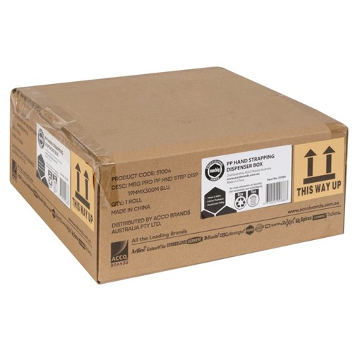 Marbig Professional Hand Strapping Dispenser Box 0.6mm Thick 19mm x 1000m Blue