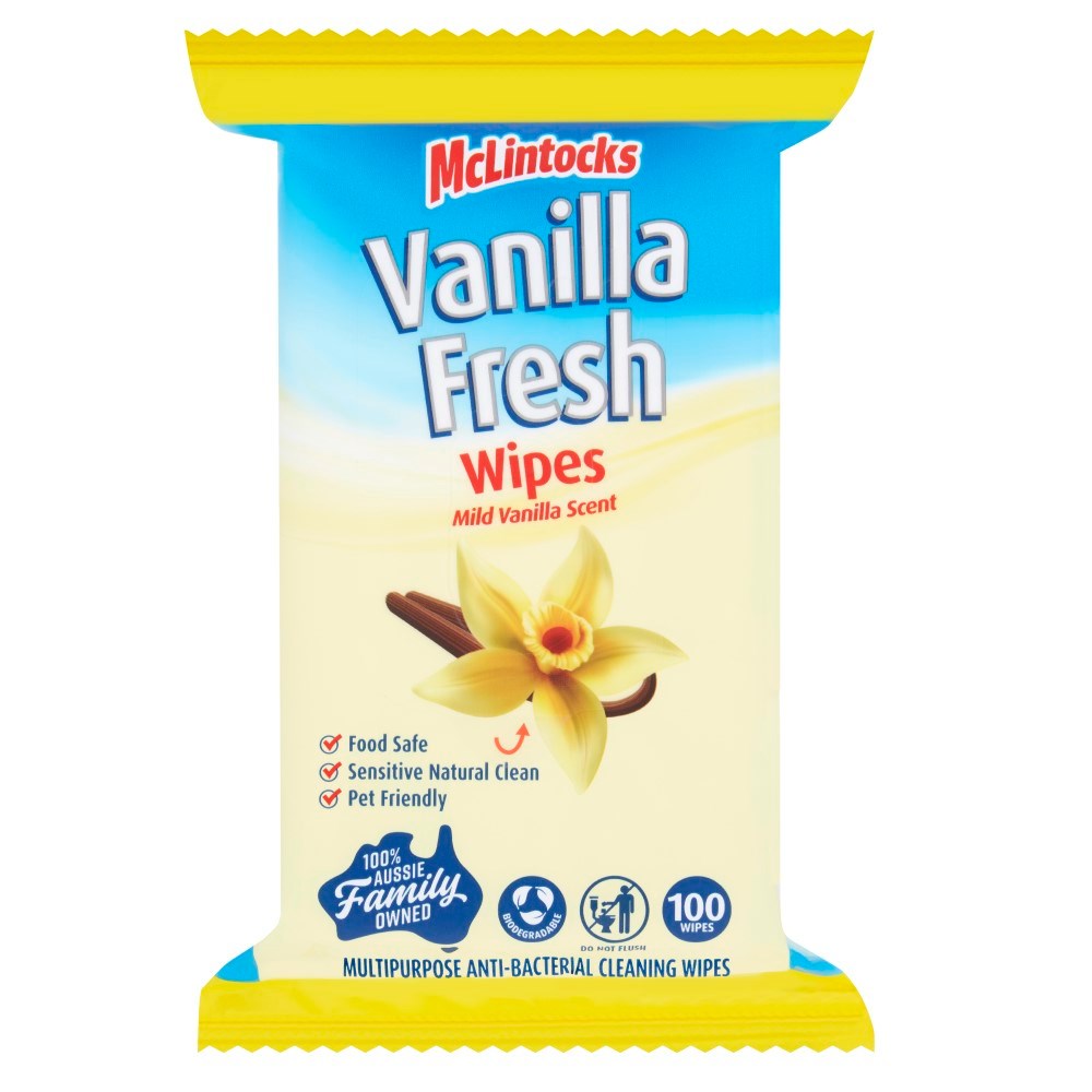 McLintocks Vanilla Fresh Anti-Bacterial Multi Purpose Cleaning Wipes Pack Of 100