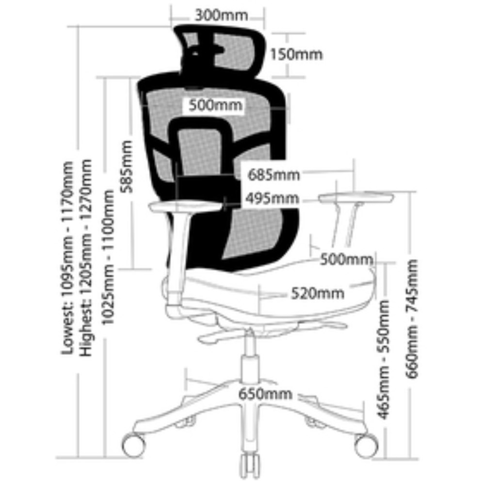 650mm black nylon 5 star base.