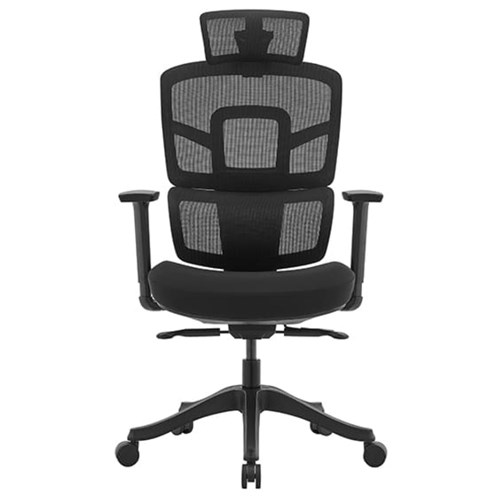 Miami Executive Chair High Back With Arms Black Fabric Seat Mesh Back