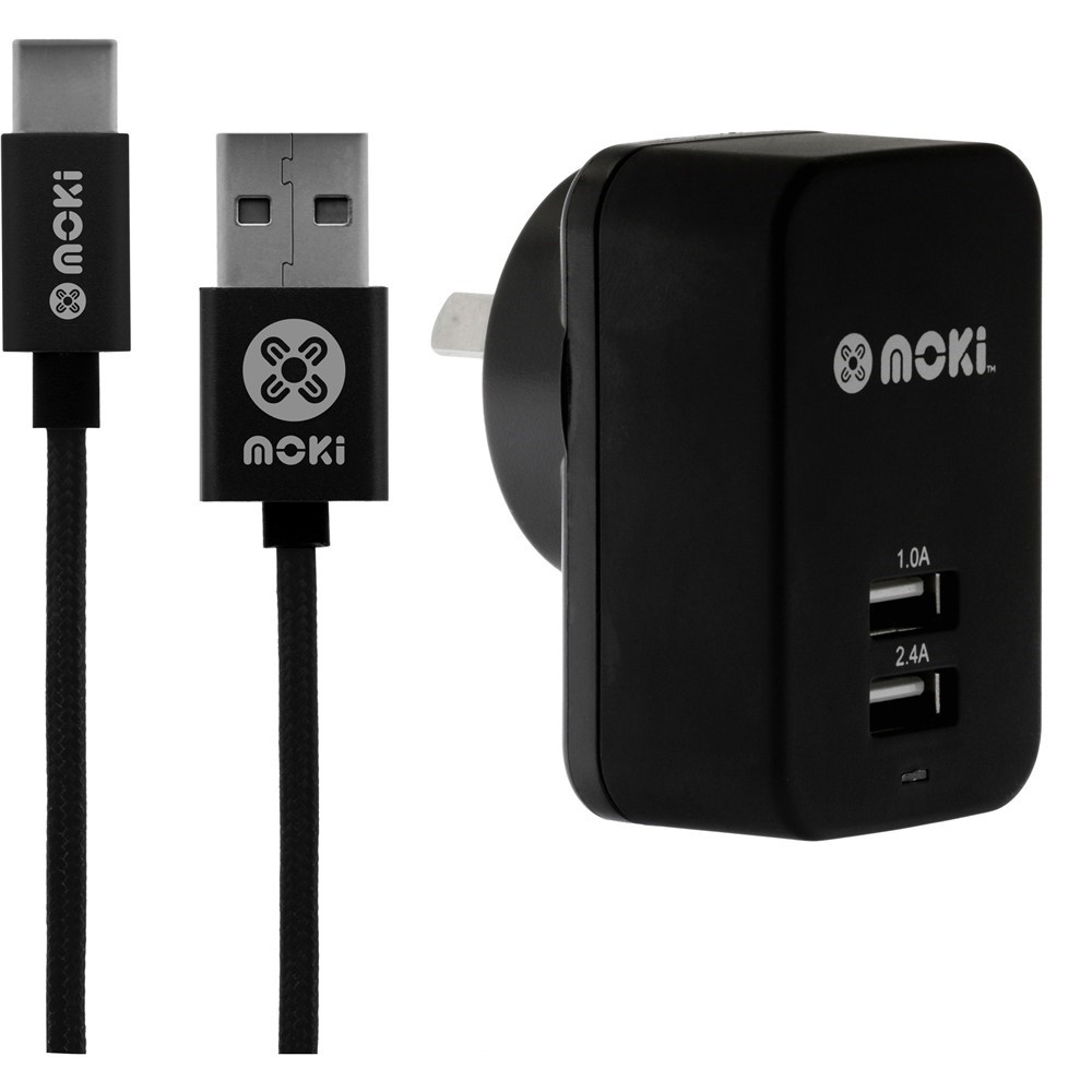 Moki Type-C SynCharge Cable With Wall Charger Black