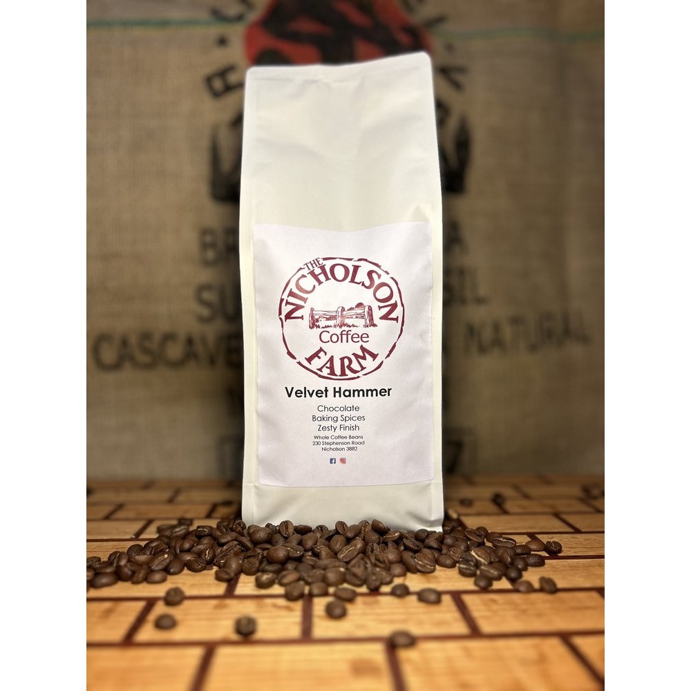 Nicholson Farms Coffee Beans Velvet Hammer - Chocolate Baking Spices Zesty Finish 1kg
