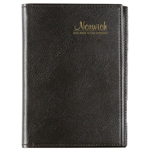 Featuring a stylish flexible leather grain cover finished with the famous gold foil 'Norwich' logo, stitched edges and fine ivory paper.